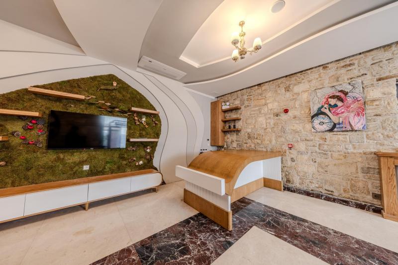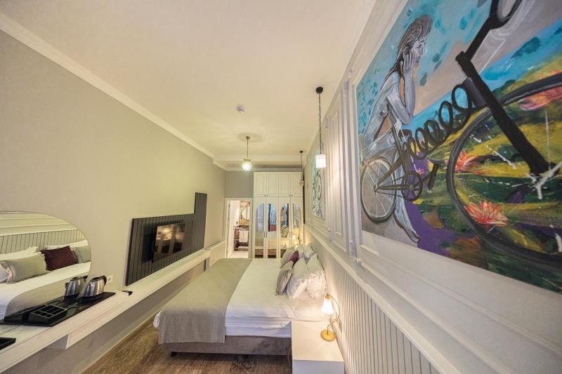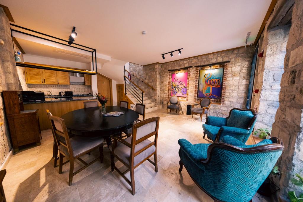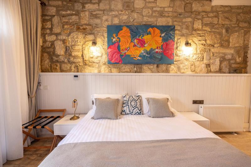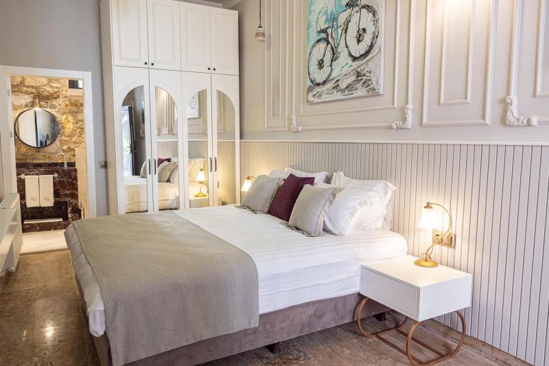 Urla’nın tarihi taş binalarından birinde yer alan sakin ve özel bir butik oteldir. Otelin konumu, Ege’nin doğal güzelliklerini ve pastoral manzaralarını keşfetmek için mükemmel bir başlangıç noktası sunar. Otelin dört odası benzer bir tasarım anlayışıyla döşenmiş olup, sade ve zarif bir atmosfer yaratırken, konforunuz düşünülerek tasarlanmıştır. Her odada, Urla’nın geleneksel mimarisini yansıtan doğal Urla taşı duvarlar, ahşap detaylar ve otel sahibinin özel tablo kolleksiyonundan eşsiz parçalar bulunmaktadır. Derviş Bey Konağı Urla'ya özgü lezzetler sunan kafeler ve restoranlara yürüme mesafesindedir, Urla’nın zengin mutfağını deneyimleme fırsatı sunar. Otelin konukları yakın çevredeki şarap bağları ziyaret edebilir, organik pazarları keşfedebilir ve yöresel lezzetlerin tadını çıkarabilirler. Doğa yürüyüşleri, bisiklet turları veya yakındaki antik kalıntıları ziyaret etmek gibi aktivitelerle gününüzü dolu dolu geçirebilirsiniz. Derviş Bey Konağı, doğayla ve tarihle iç içe, sakin bir tatil arayanlar için ideal bir seçenektir. Her bir misafirine özel ilgi gösteren bu butik otelde, huzurlu bir keşif yapın ve şehrin karmaşasından uzaklaşın.